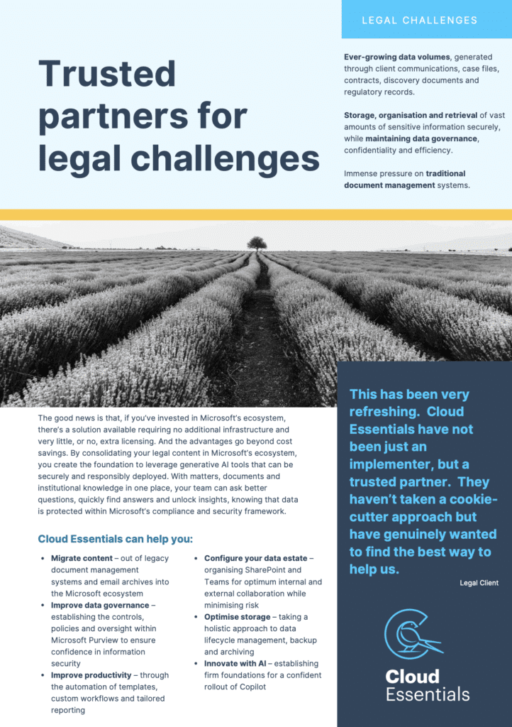 "This has been very refreshing. Cloud Essentials have not been just an implementer, but a trusted partner. They haven’t taken a cookie- cutter approach but have genuinely wanted to find the best way to help us."